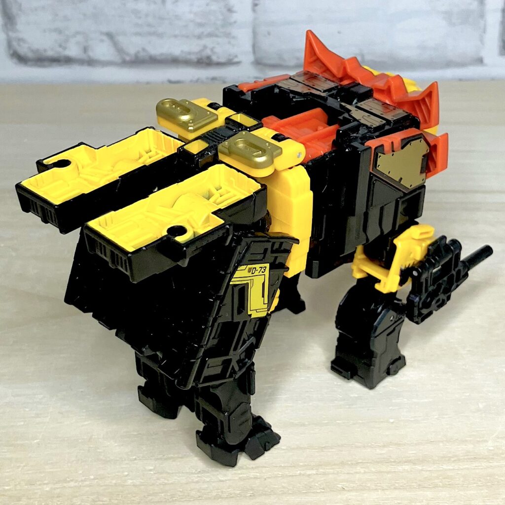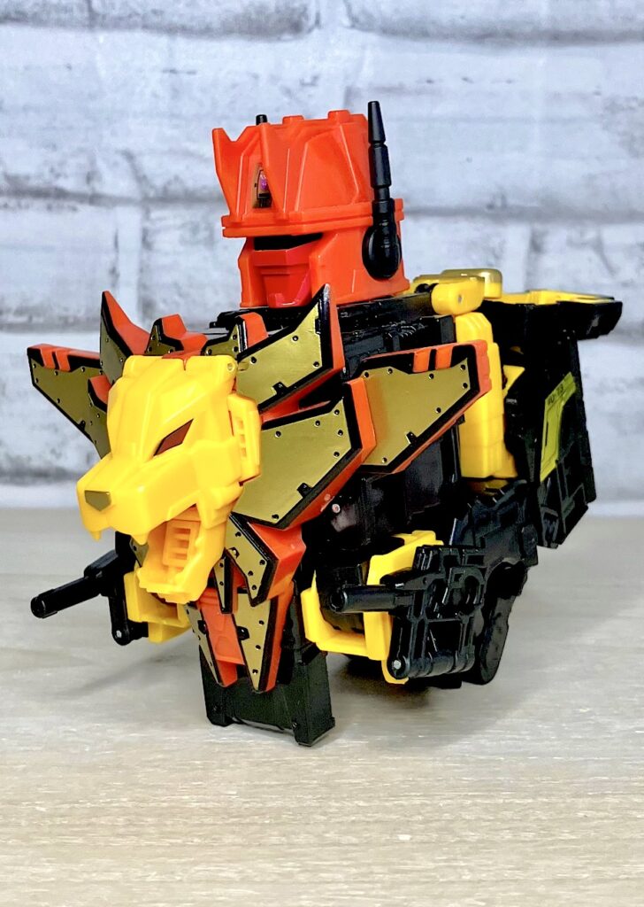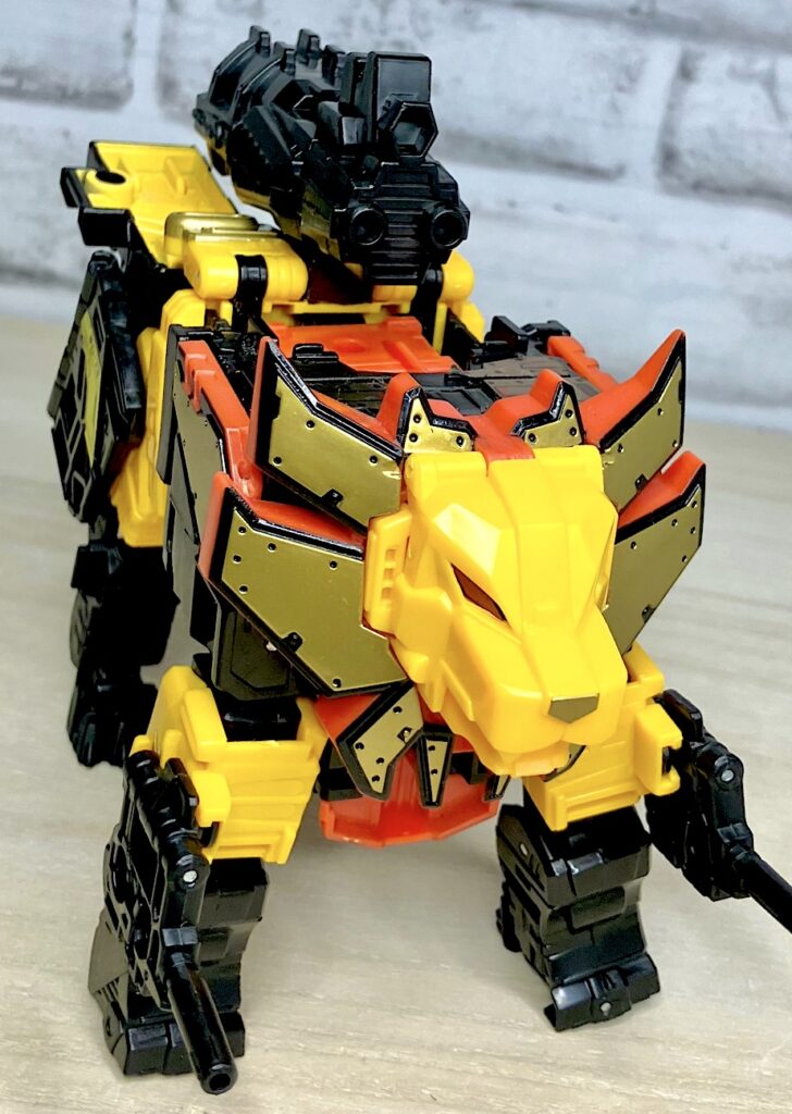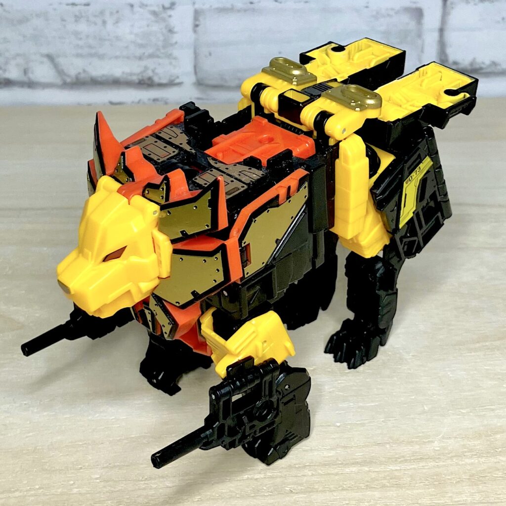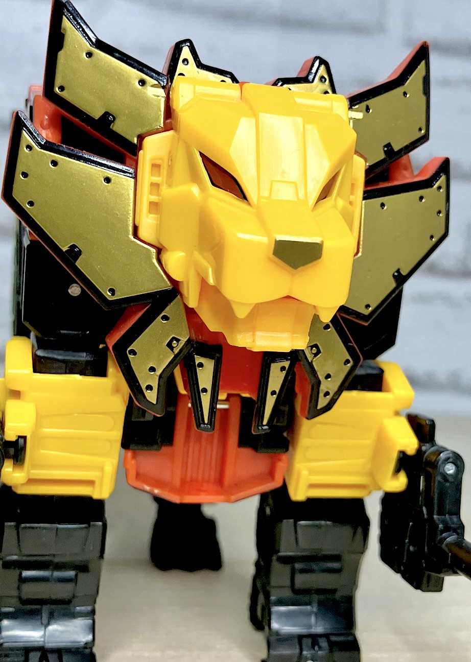 【変形】ほぼ見た目どおりのシンプルなもの。タテガミが分離するところが面白ポイント。また、ライオンの太ももをスライドさせてロボのふくらはぎにするところは物議を醸しそう。