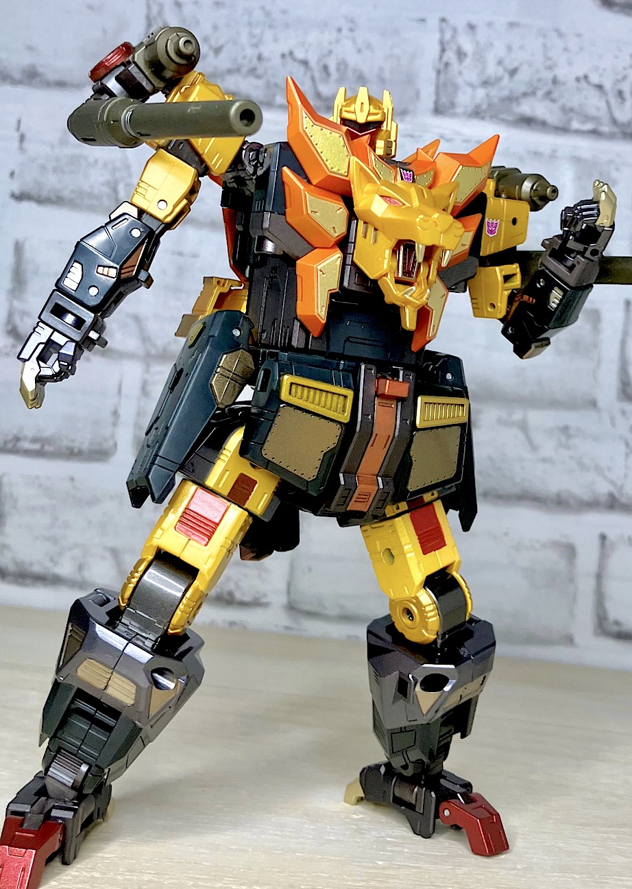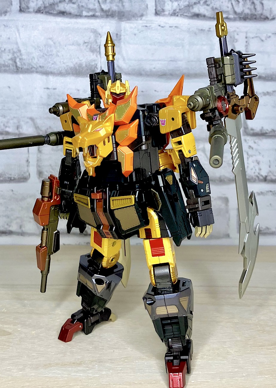 せっかくなので初のリメイクだったPOTP版プレダキングも紹介していきましょう。5体セットでタイタンクラスとしてリリースされた大型商品で、CW系合体戦士とは一線を画す特別なコンバイナー(前例としてデバステーターがありました)。潤沢なコストをそのボリュームに全振りした圧倒的な存在感と、G1トイをリスペクトしたあえてのチープ感、遊びやすさを優先した大胆な構造が特徴です。賛否はあるでしょうが個人的には大満足なアイテムでした。