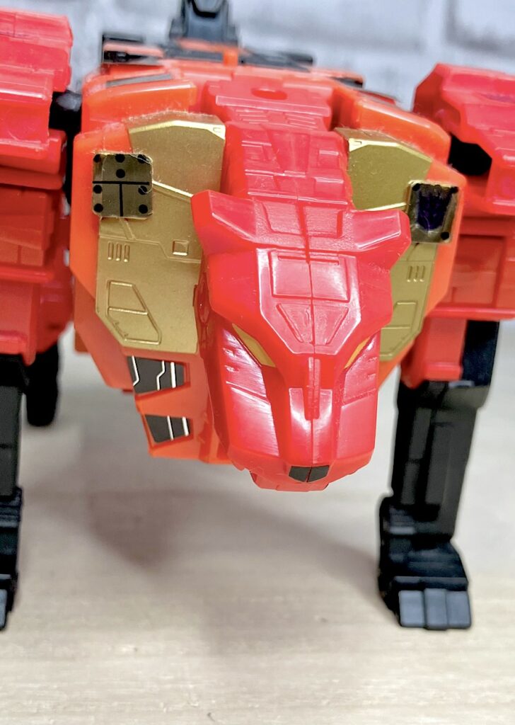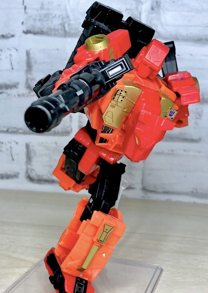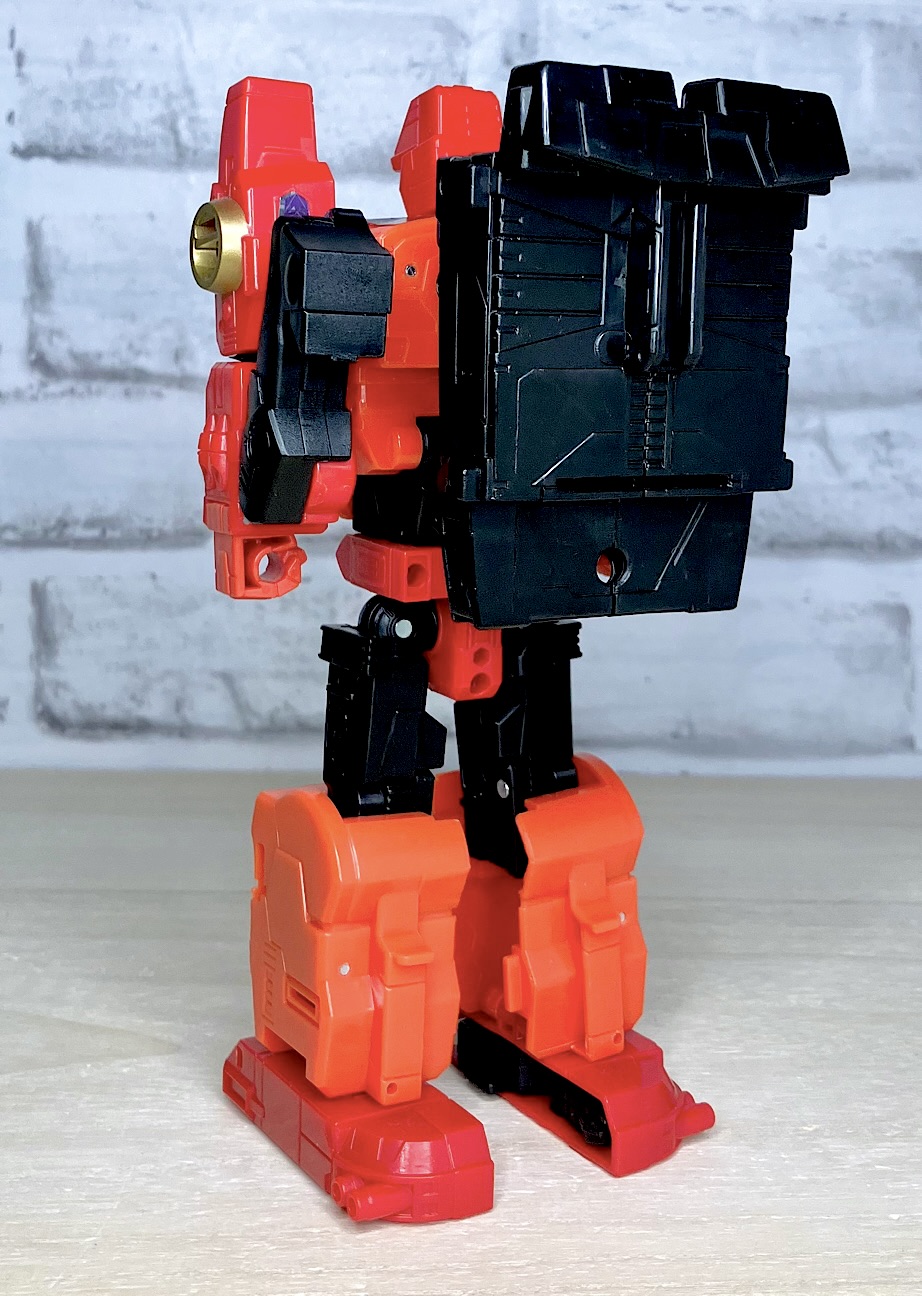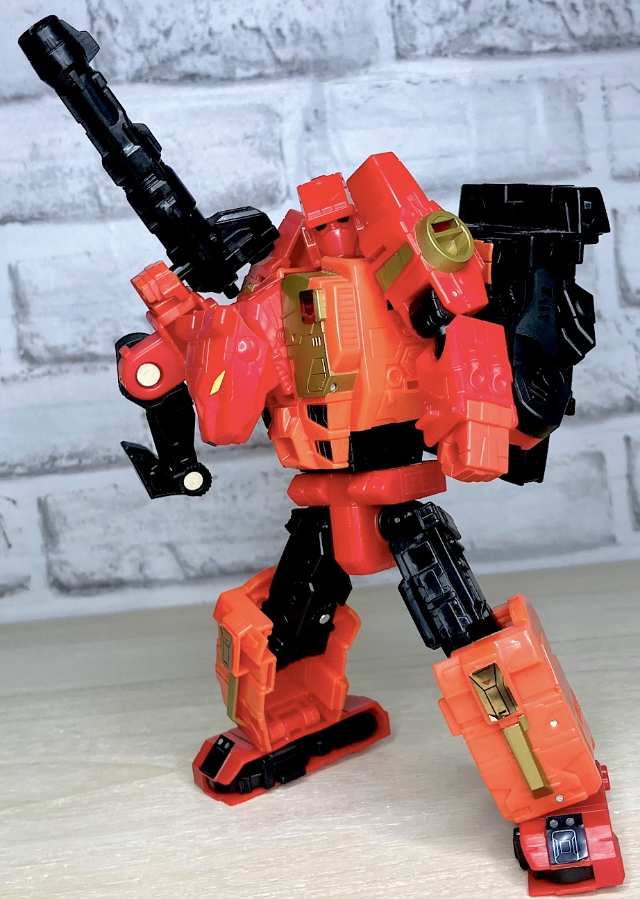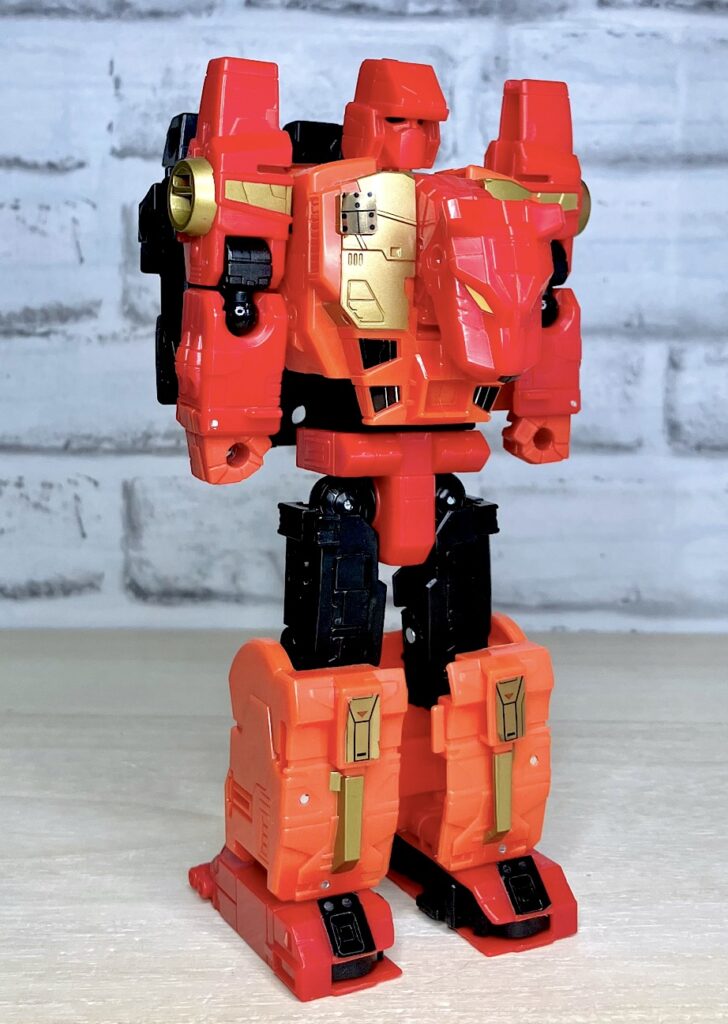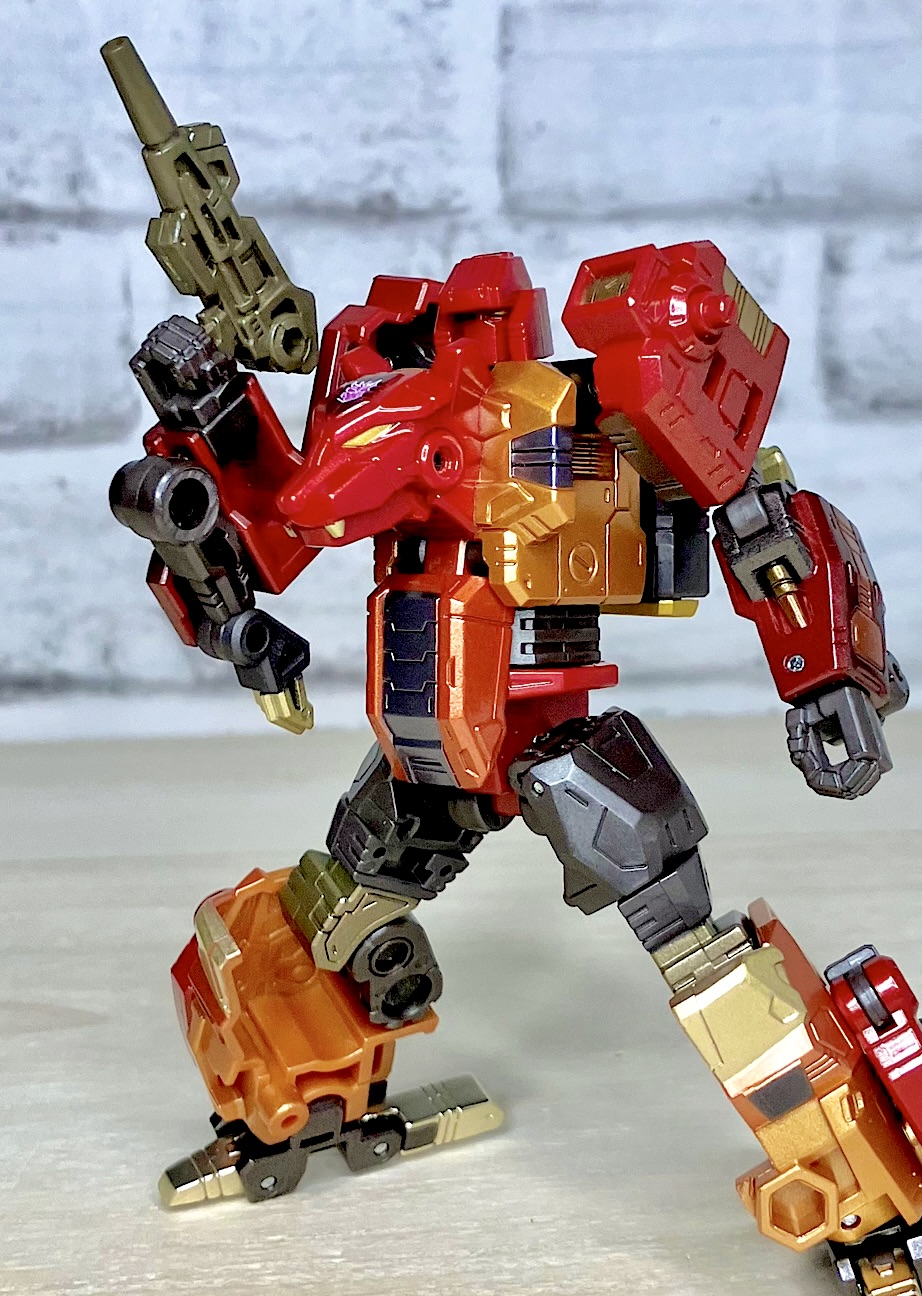 【合体モード】POTP版はプレダキングの左右が反転しており、ランページは左腕に変形。これはG1当時、アニメとトイで左右反転していたため。両者間の連携がうまくいってなかったのでしょうか。POTP 版はアニメ合わせの配置となっております。