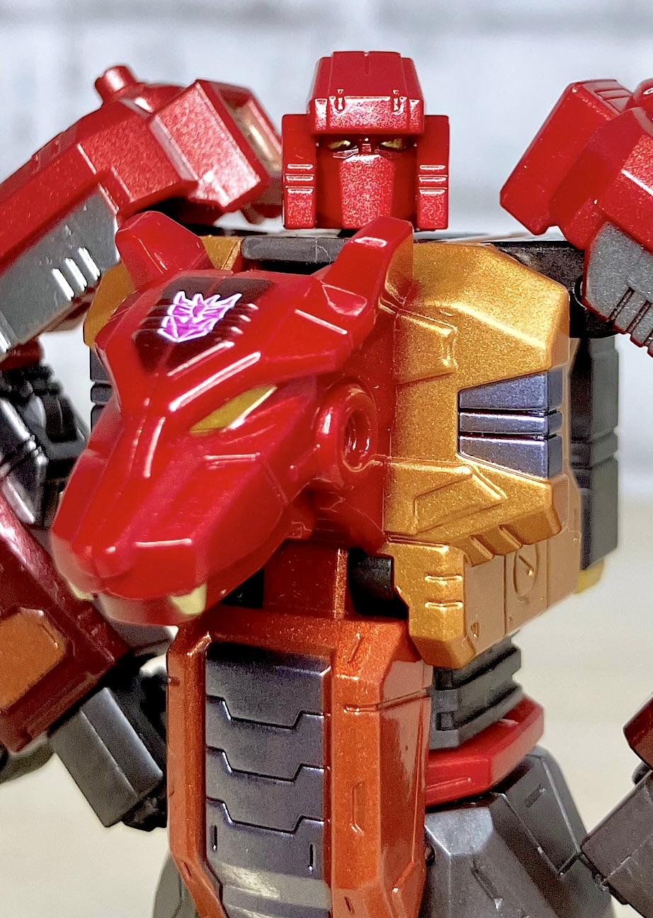せっかくなので初のリメイクだったPOTP版プレダキングも紹介していきましょう。5体セットでタイタンクラスとしてリリースされた大型商品で、CW系合体戦士とは一線を画す特別なコンバイナー(前例としてデバステーターがありました)。潤沢なコストをそのボリュームに全振りした圧倒的な存在感と、G1トイをリスペクトしたあえてのチープ感、遊びやすさを優先した大胆な構造が特徴です。賛否はあるでしょうが個人的には大満足なアイテムでした。