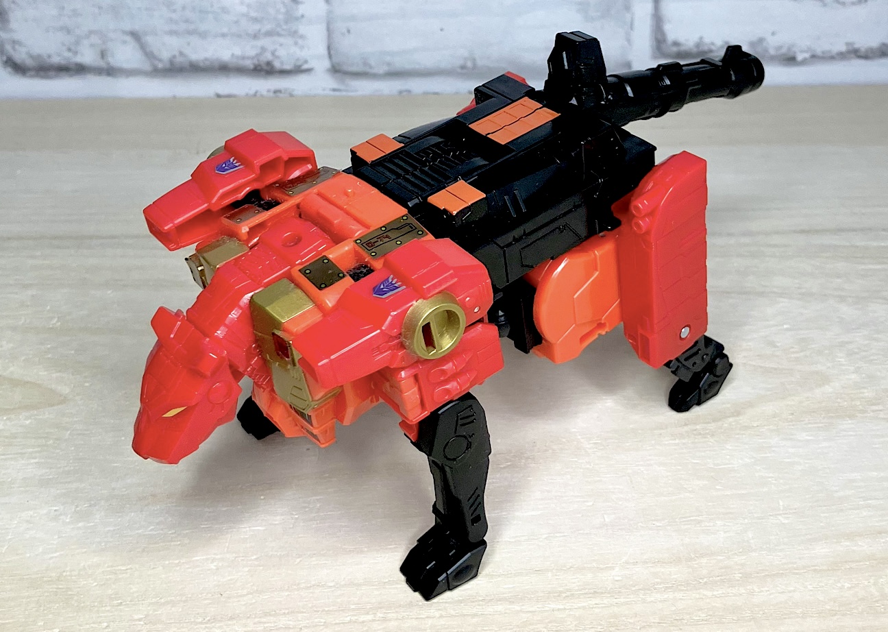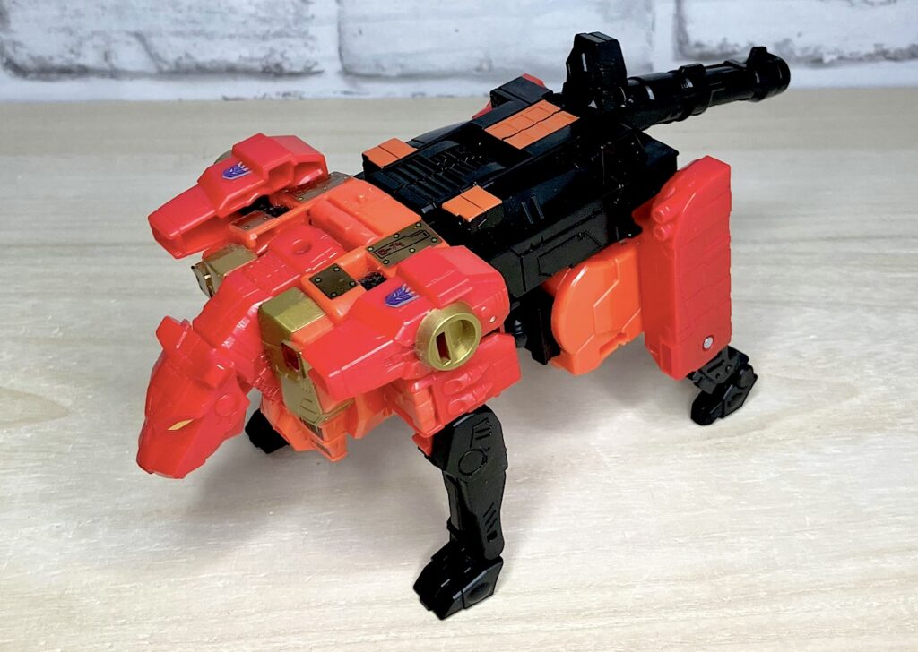 【ビーストモード】常に怒りと破壊衝動に駆られた荒くれ者ですが、テレビを見せておけば落ち着いているという幼児みたいなヤツ。G1当時は「ラムページ」でした。