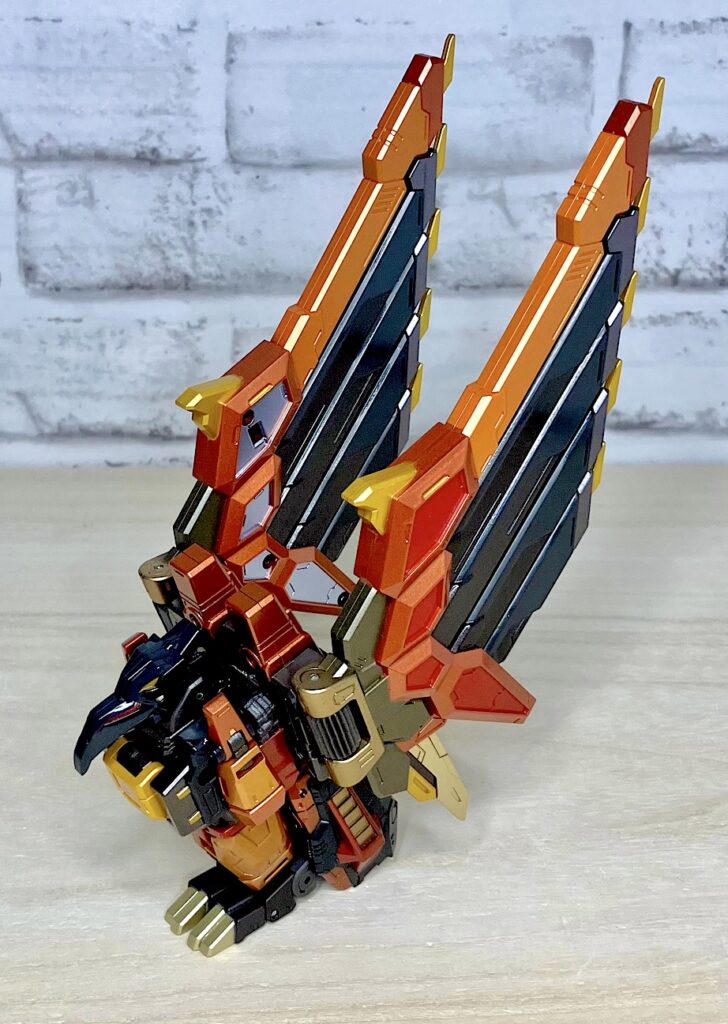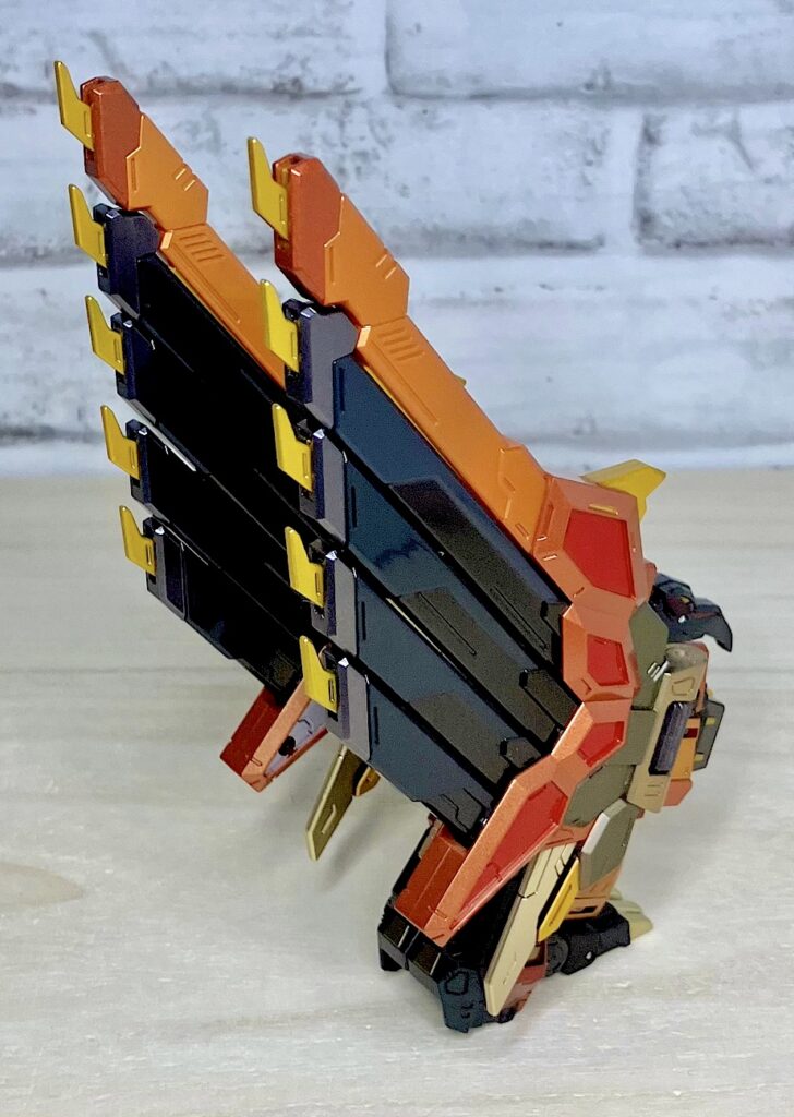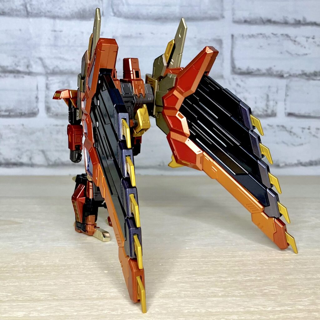 ウイングの羽をスライドさせると、面積が広がります。合体時用のギミックですが、神々しさアップ!