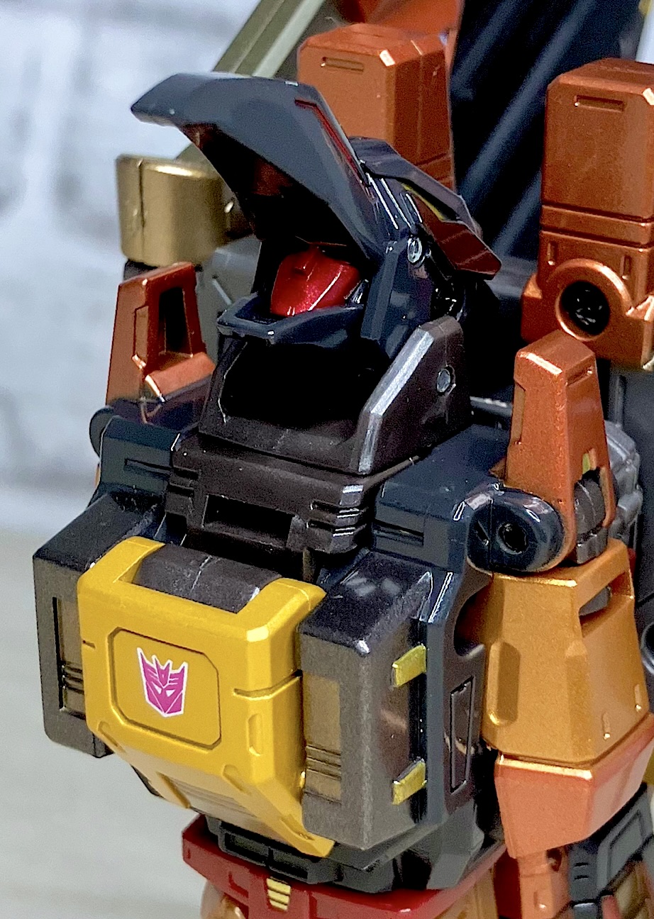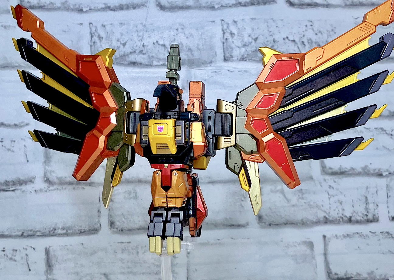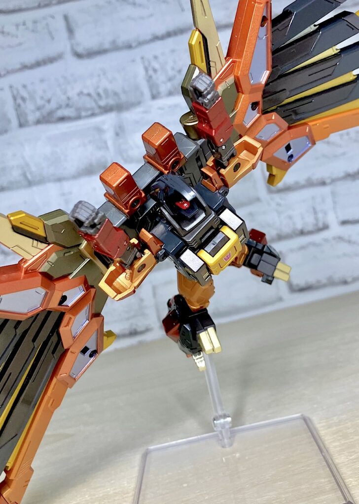 【合体モード】ダイブボムは特殊で、翼を取り外して本体だけで左腕になります。翼はそのままプレダキングのものになるのですが、よく練られた構成ですよね。G1当時もインパクトがあったことでしょう。
