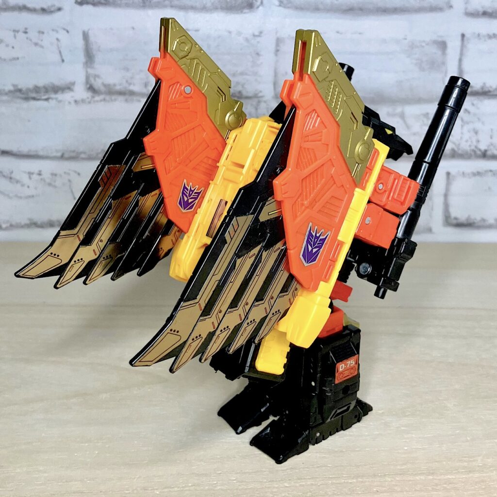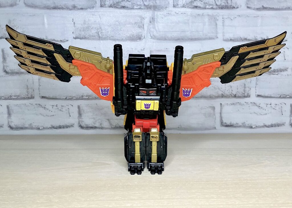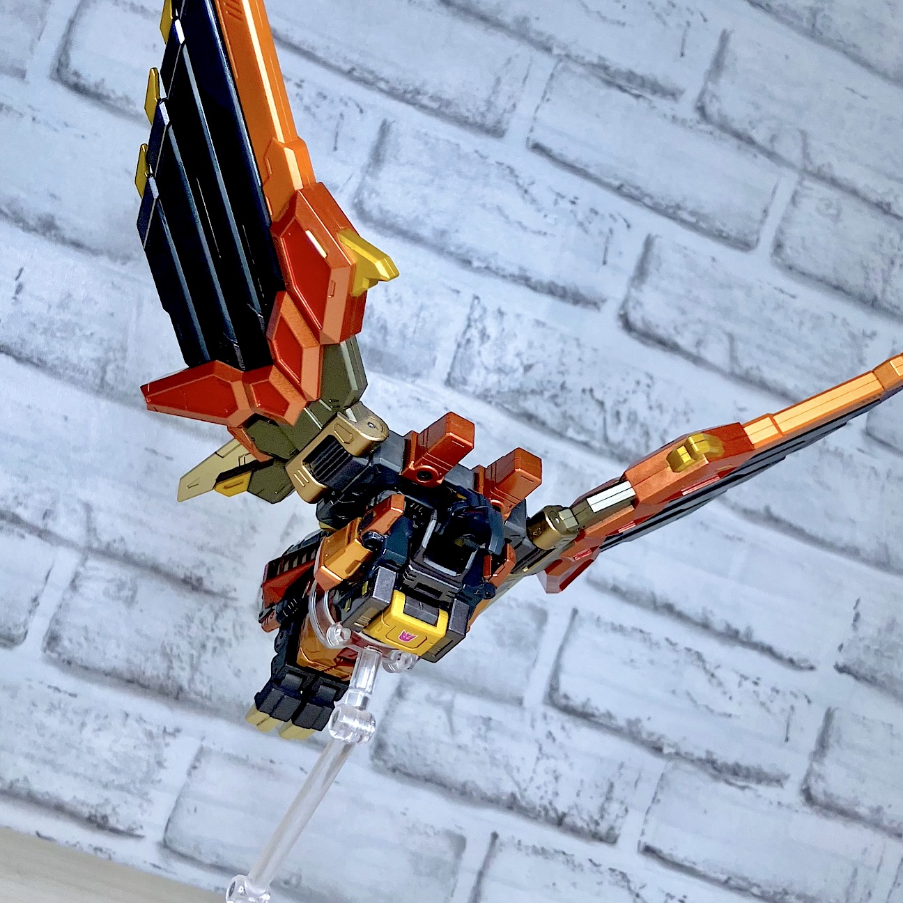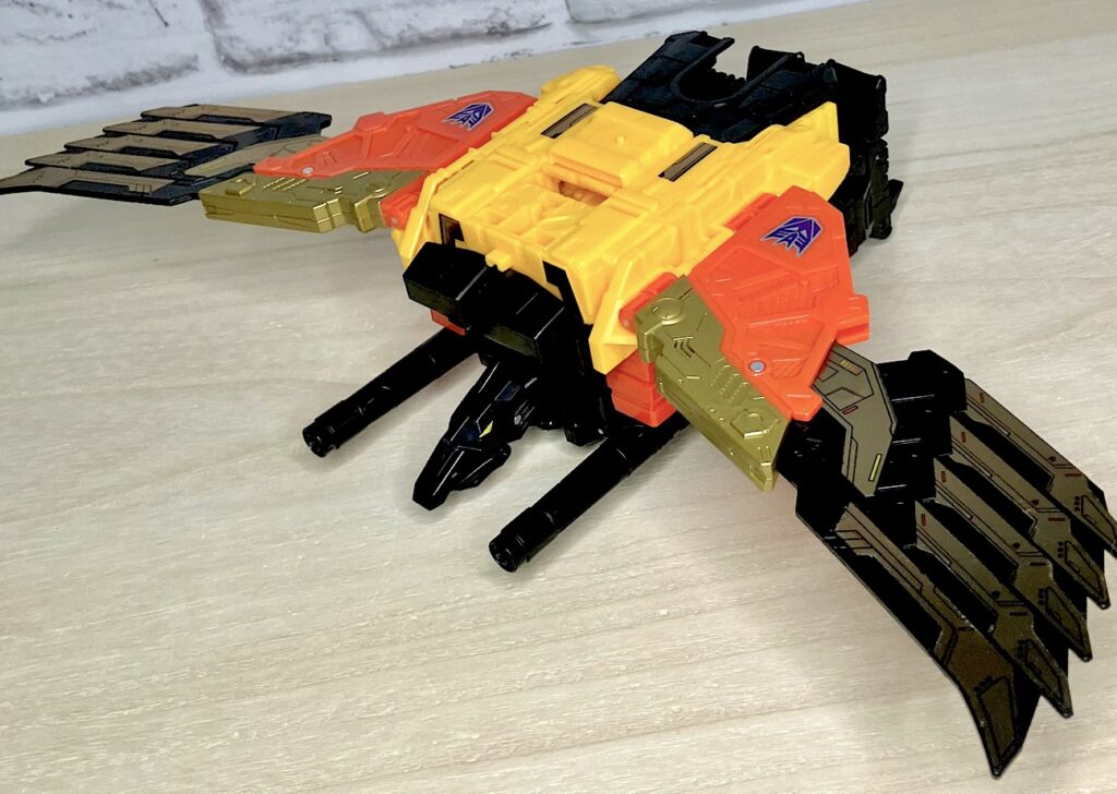 プレダコンの特殊な5体合体を象徴するようなキャラで、腕と翼を担当します。その翼もエッジの効いたシャープさと重厚感を備えており、大きさもなかなか。単体だとやや持て余すくらいだったりします。