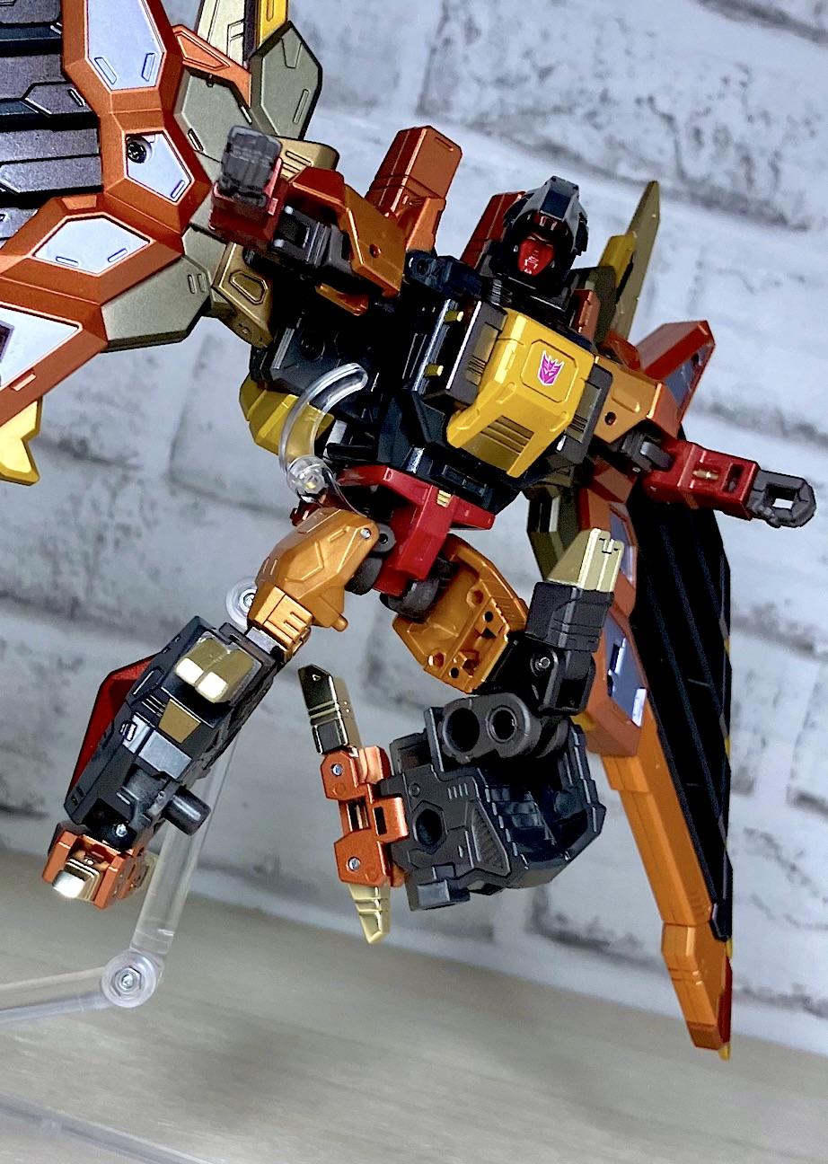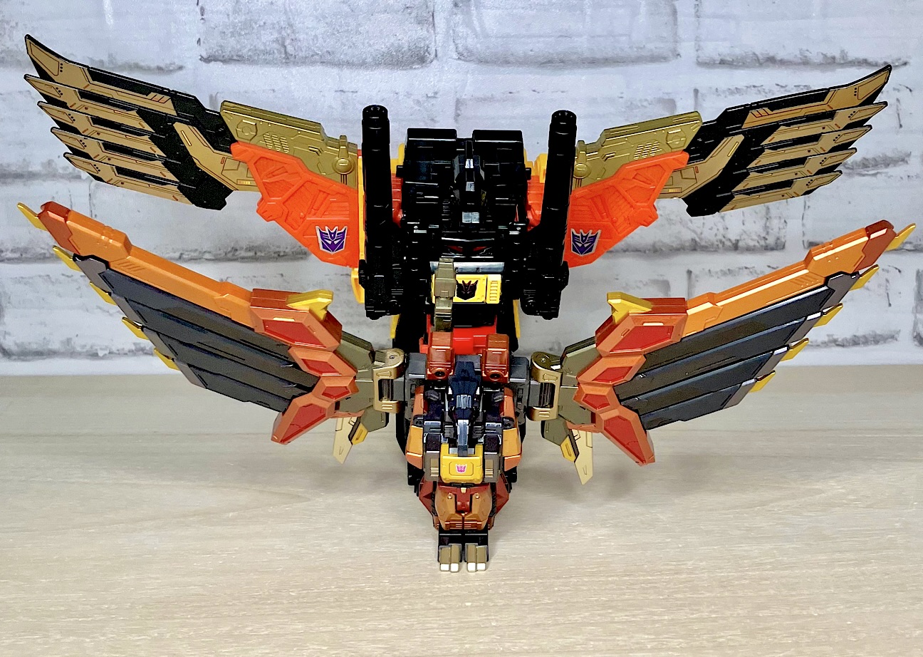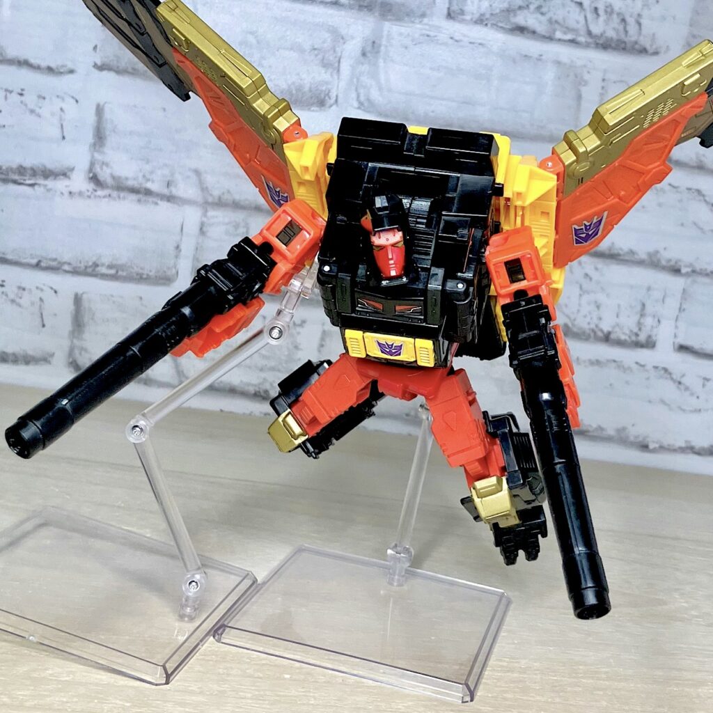 プレダコンの特殊な5体合体を象徴するようなキャラで、腕と翼を担当します。その翼もエッジの効いたシャープさと重厚感を備えており、大きさもなかなか。単体だとやや持て余すくらいだったりします。