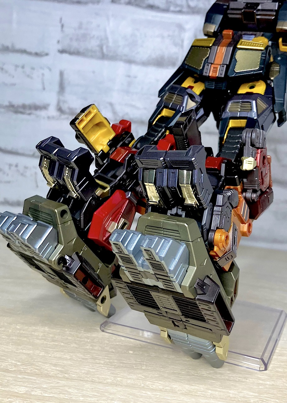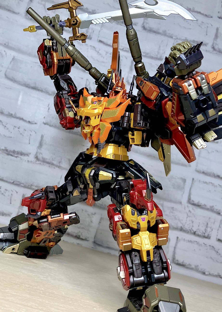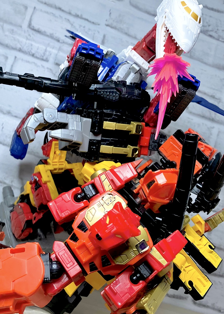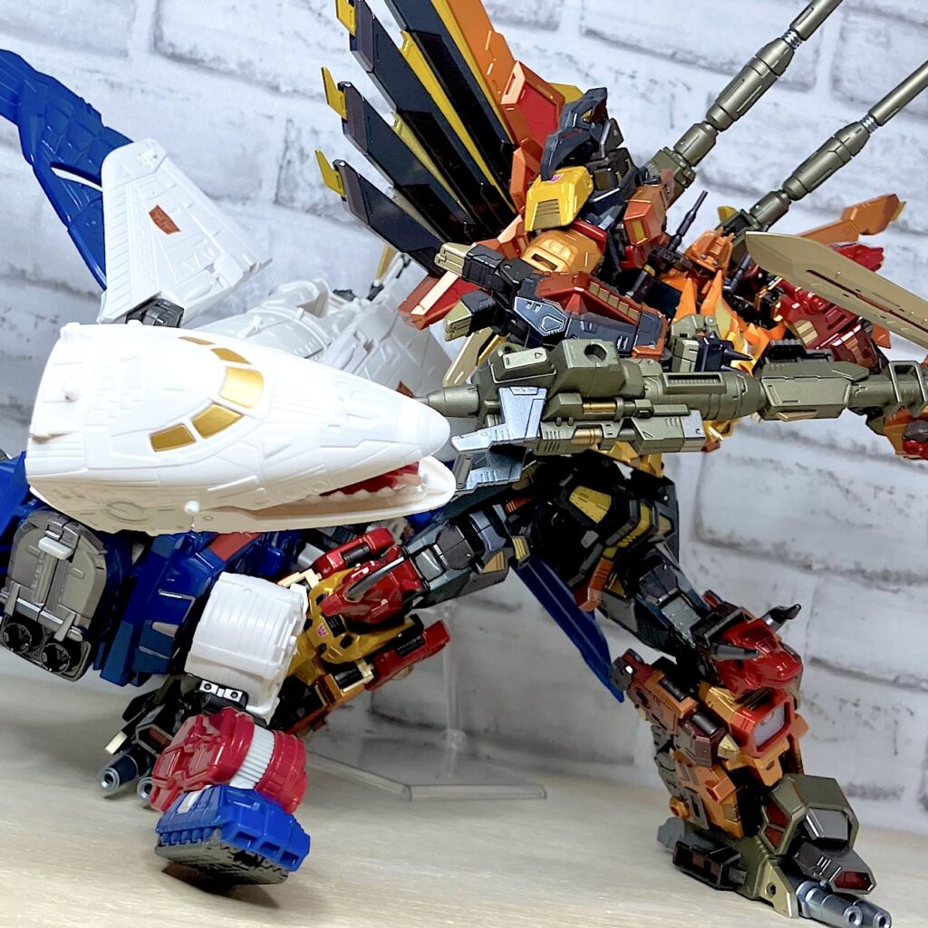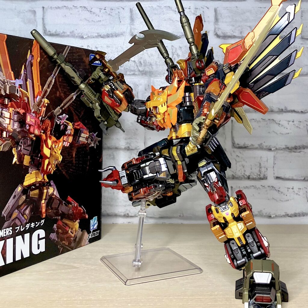 せっかくなので初のリメイクだったPOTP版プレダキングも紹介していきましょう。5体セットでタイタンクラスとしてリリースされた大型商品で、CW系合体戦士とは一線を画す特別なコンバイナー(前例としてデバステーターがありました)。潤沢なコストをそのボリュームに全振りした圧倒的な存在感と、G1トイをリスペクトしたあえてのチープ感、遊びやすさを優先した大胆な構造が特徴です。賛否はあるでしょうが個人的には大満足なアイテムでした。