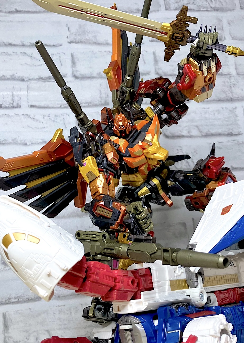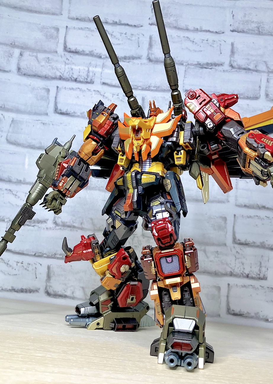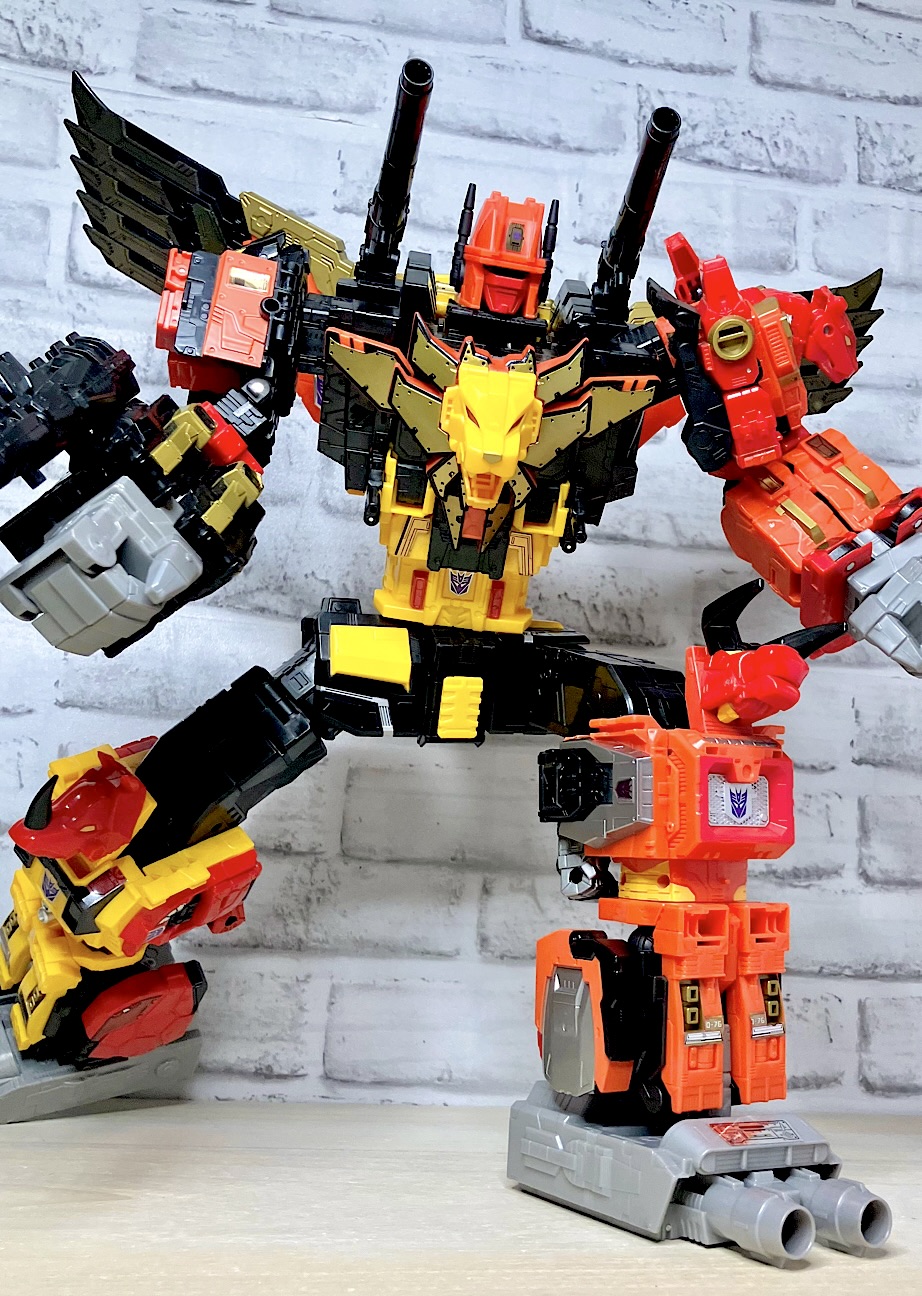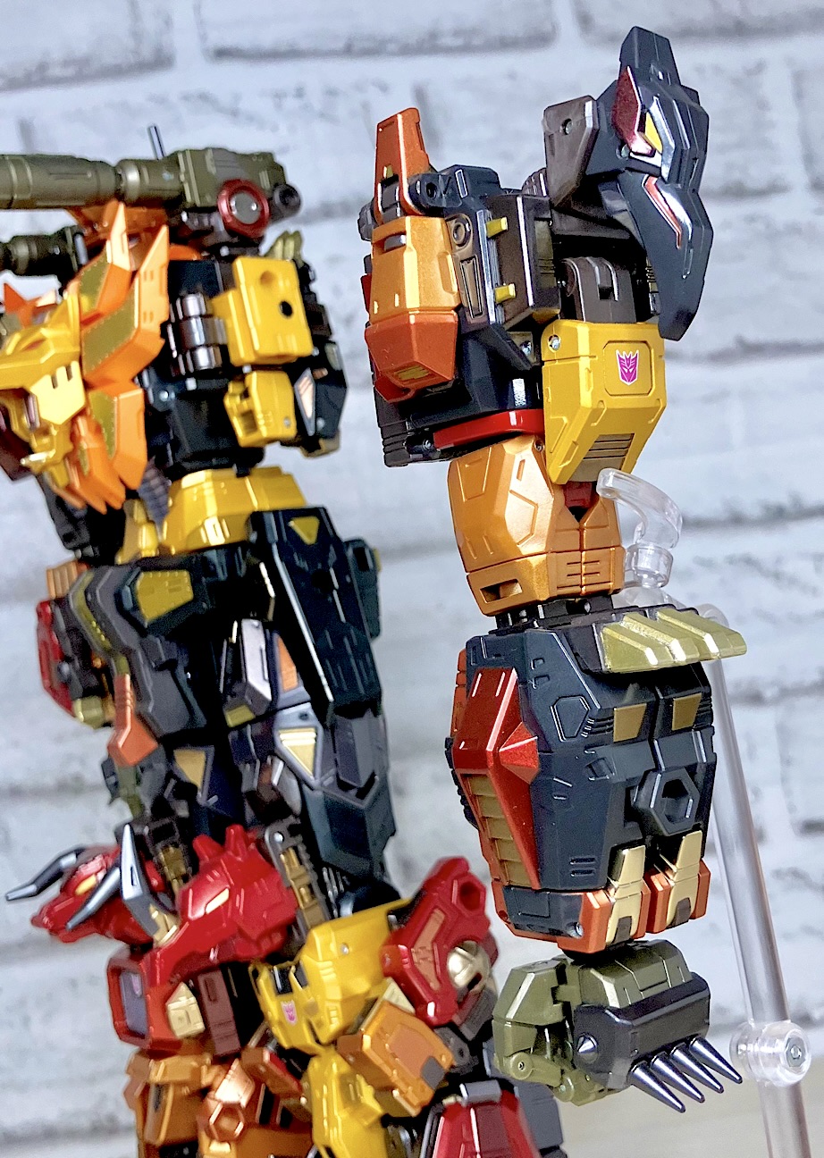 せっかくなので初のリメイクだったPOTP版プレダキングも紹介していきましょう。5体セットでタイタンクラスとしてリリースされた大型商品で、CW系合体戦士とは一線を画す特別なコンバイナー(前例としてデバステーターがありました)。潤沢なコストをそのボリュームに全振りした圧倒的な存在感と、G1トイをリスペクトしたあえてのチープ感、遊びやすさを優先した大胆な構造が特徴です。賛否はあるでしょうが個人的には大満足なアイテムでした。