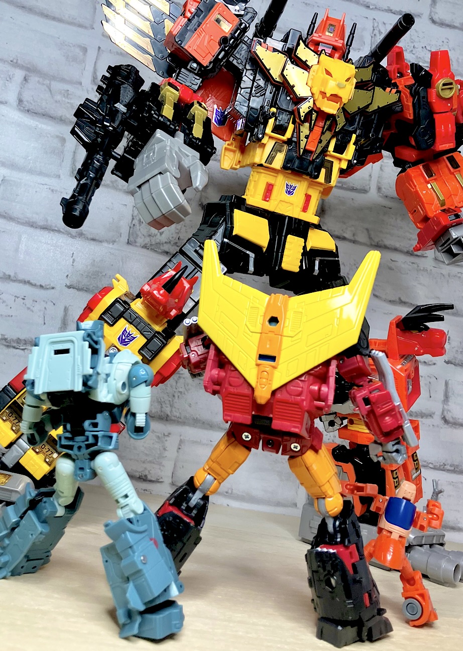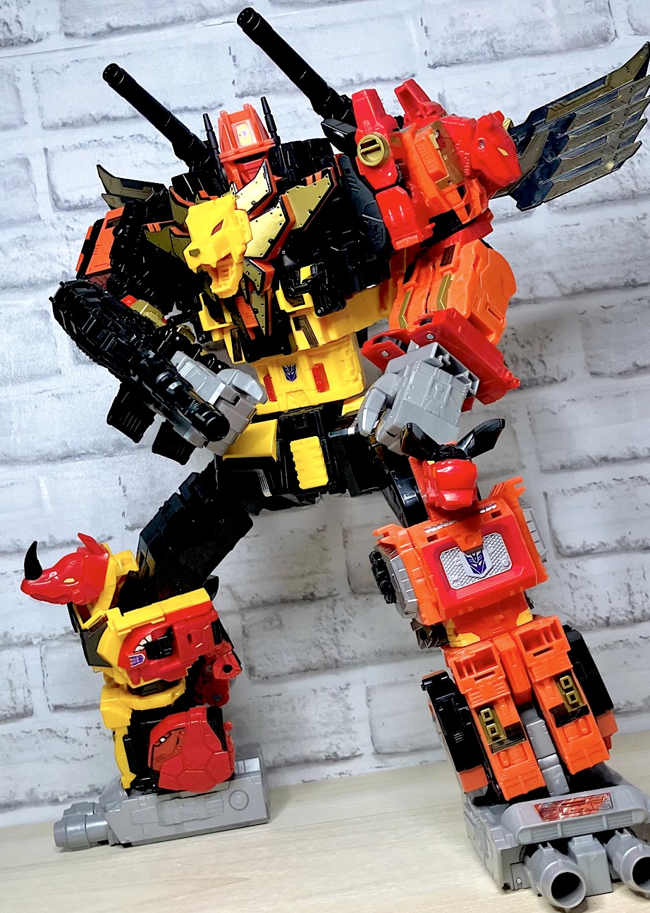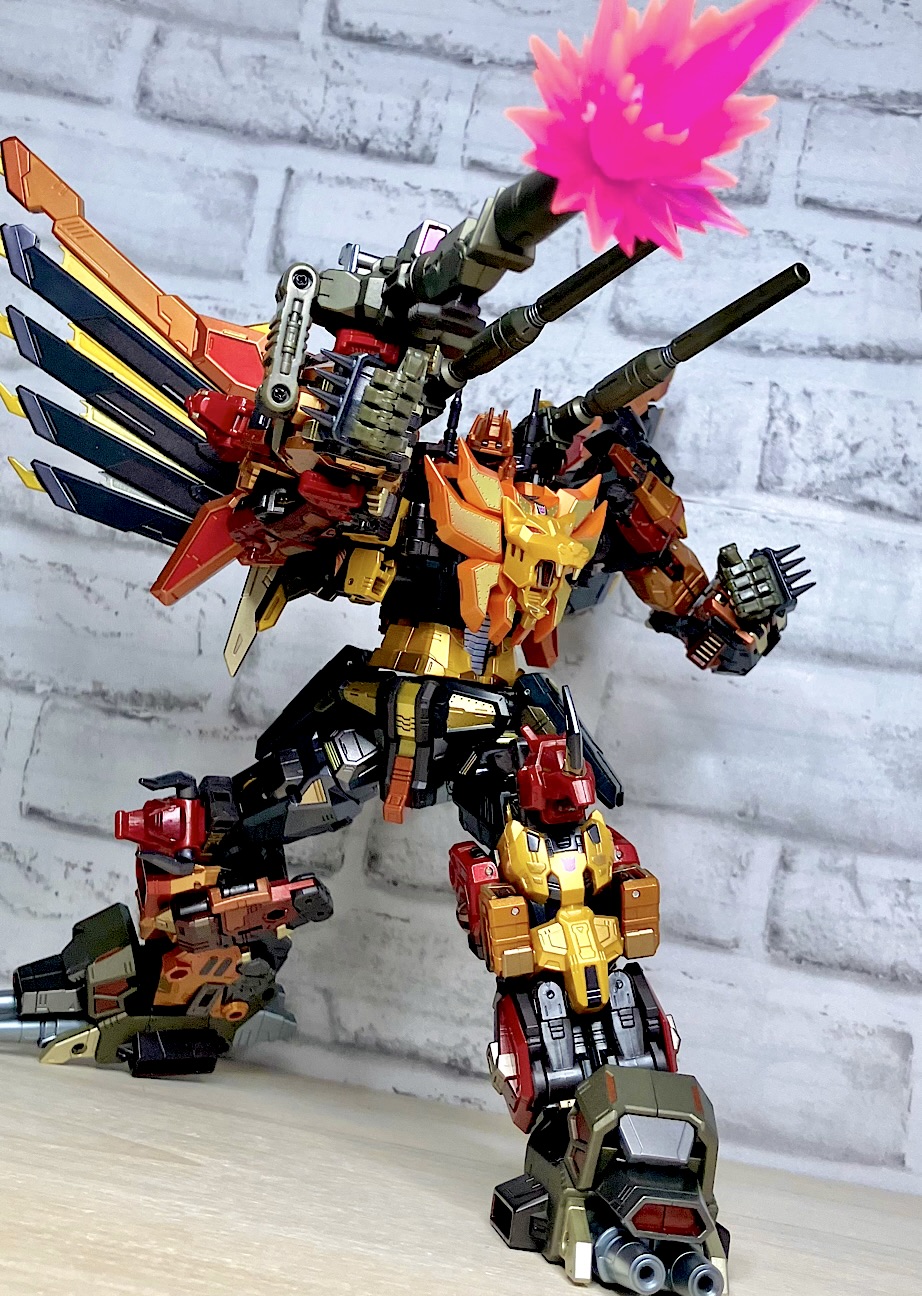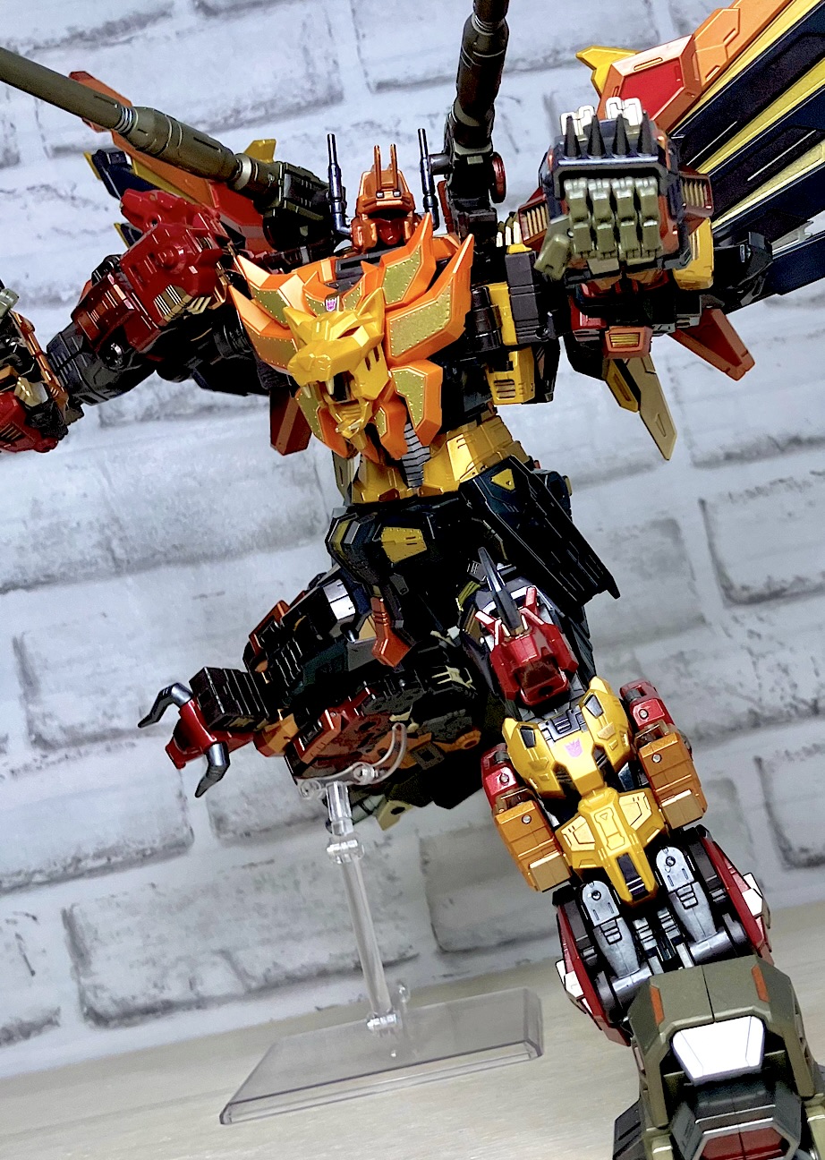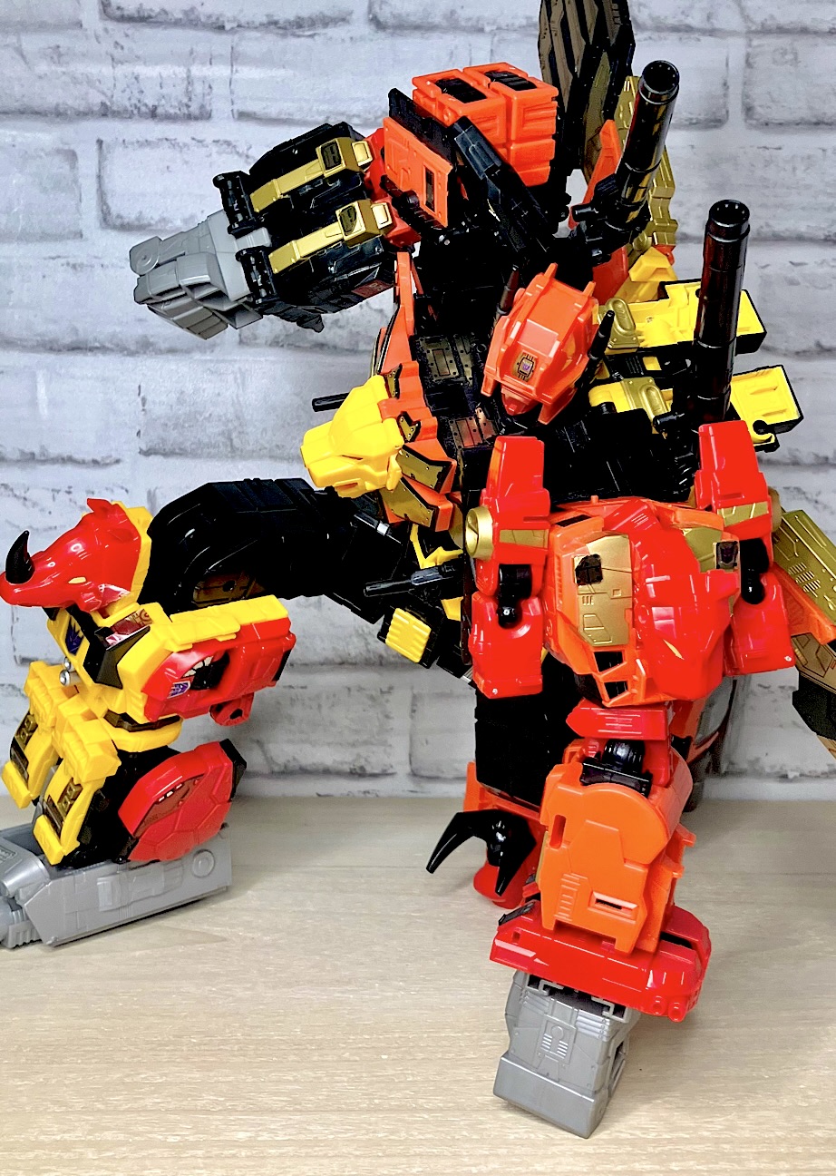 せっかくなので初のリメイクだったPOTP版プレダキングも紹介していきましょう。5体セットでタイタンクラスとしてリリースされた大型商品で、CW系合体戦士とは一線を画す特別なコンバイナー(前例としてデバステーターがありました)。潤沢なコストをそのボリュームに全振りした圧倒的な存在感と、G1トイをリスペクトしたあえてのチープ感、遊びやすさを優先した大胆な構造が特徴です。賛否はあるでしょうが個人的には大満足なアイテムでした。