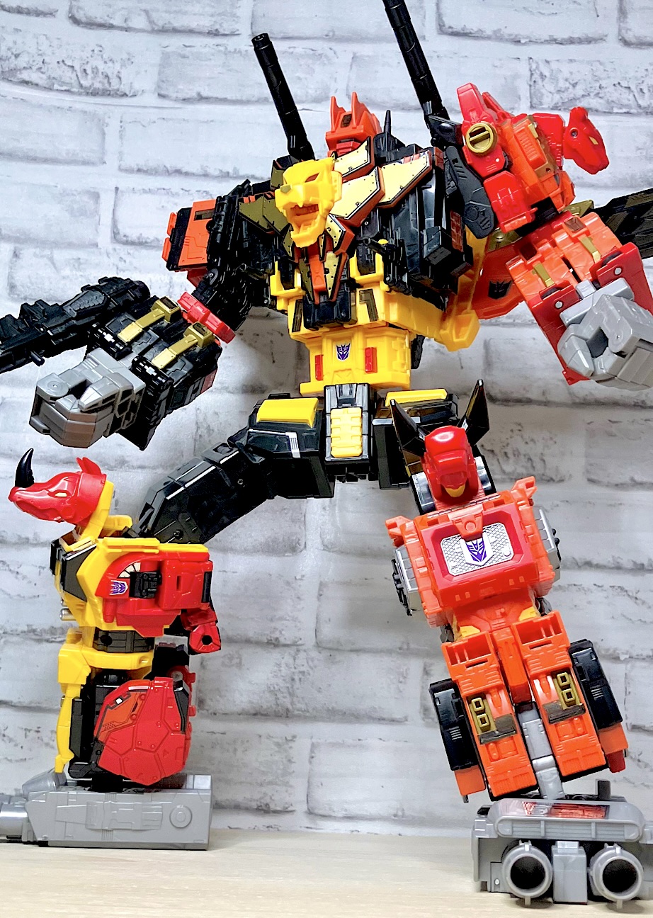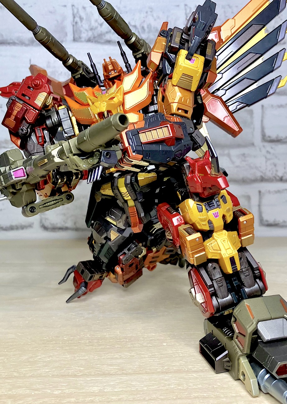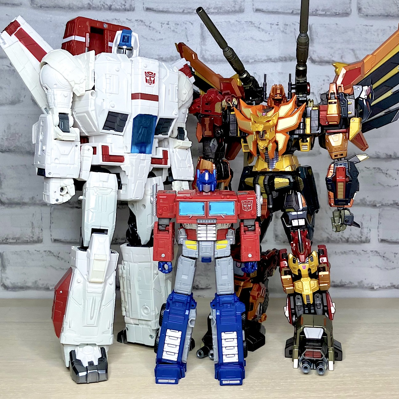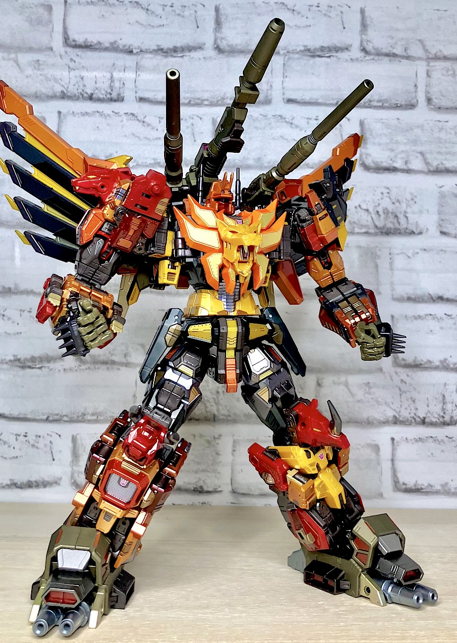 せっかくなので初のリメイクだったPOTP版プレダキングも紹介していきましょう。5体セットでタイタンクラスとしてリリースされた大型商品で、CW系合体戦士とは一線を画す特別なコンバイナー(前例としてデバステーターがありました)。潤沢なコストをそのボリュームに全振りした圧倒的な存在感と、G1トイをリスペクトしたあえてのチープ感、遊びやすさを優先した大胆な構造が特徴です。賛否はあるでしょうが個人的には大満足なアイテムでした。