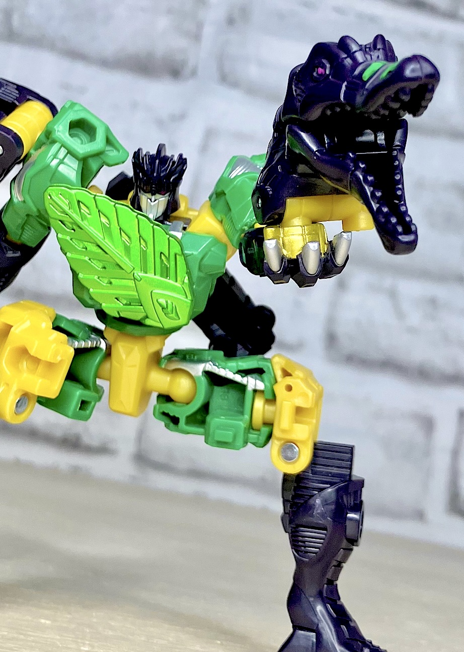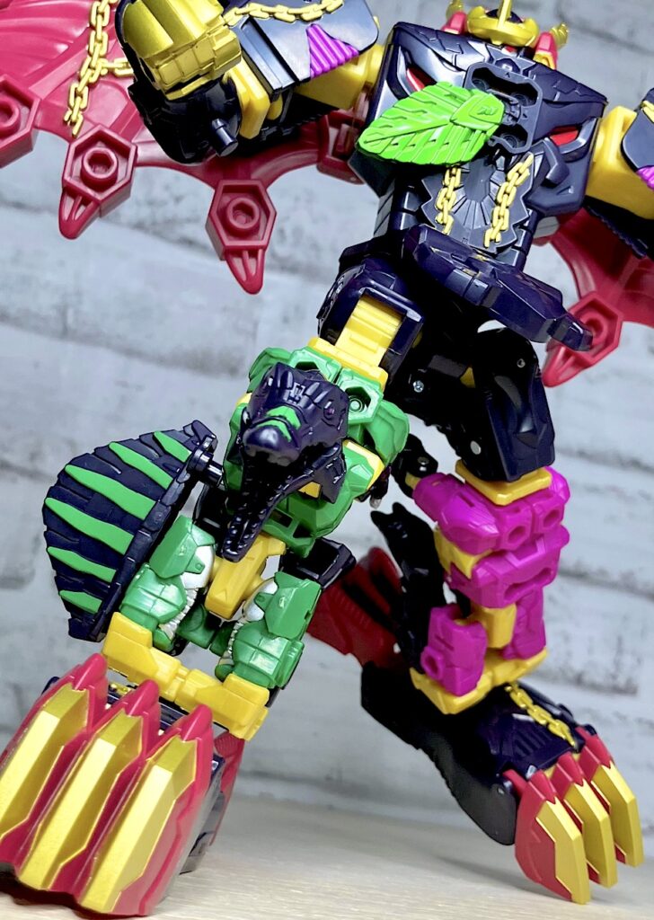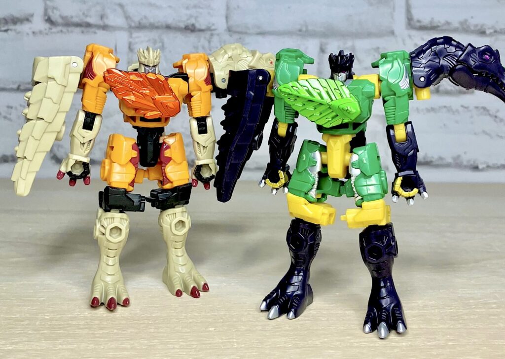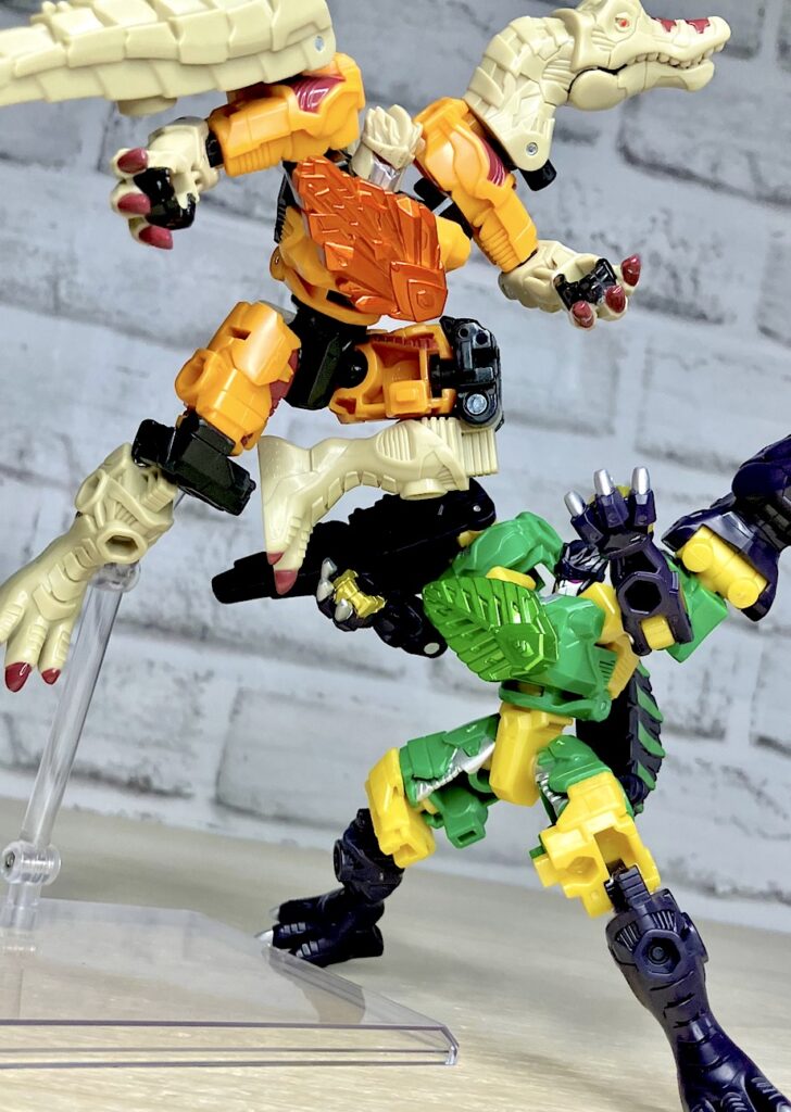 早速ワールドドラグナスとワイルドッキング!恐竜族はシッポでトゲトゲシルエットになるのが特徴。カラーに黒も混じっているので親和性は高いです。